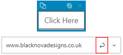 To add a link to your button, enter the URL into the URL box and press the curly arrow button