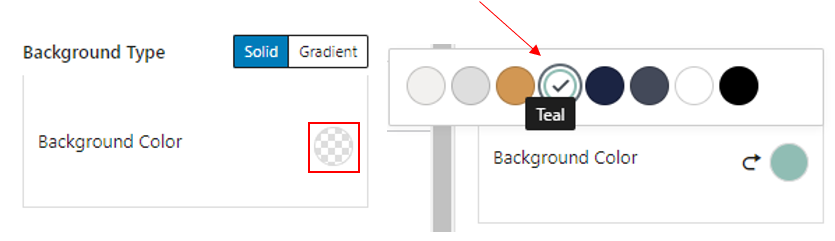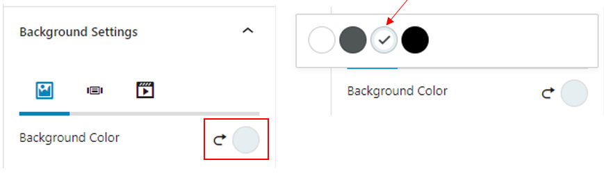 To change the background colour of the row, go to the sidebar Block > Background Settings and select the circle next to Background Colour. The colour options to choose from will be displayed.