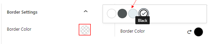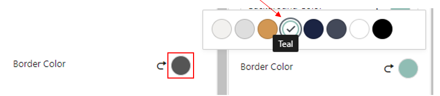 To change the colour of the border, go to the sidebar Block > Border Settings and select the circle next to Border Colour. The colour options should then be displayed for you to choose from.